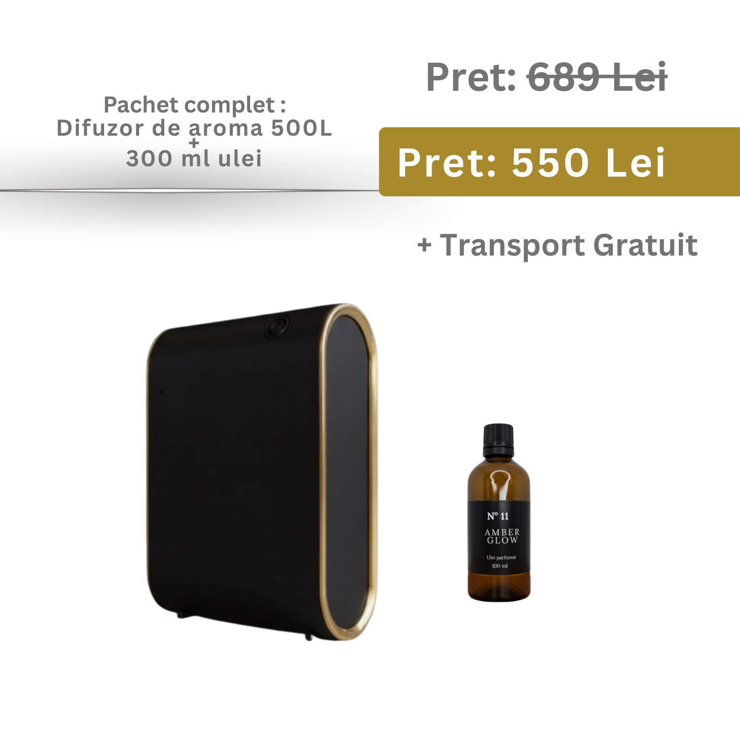 Pachet Promotional Difuzor 500L BLACK +300 ml Ulei parfumat
