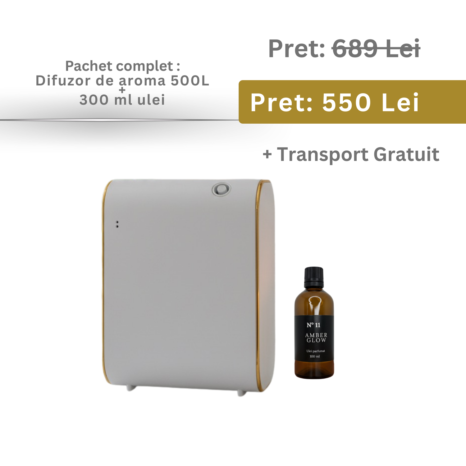 Pachet Promotional Difuzor 500L WHITE +300 ml Ulei parfumat